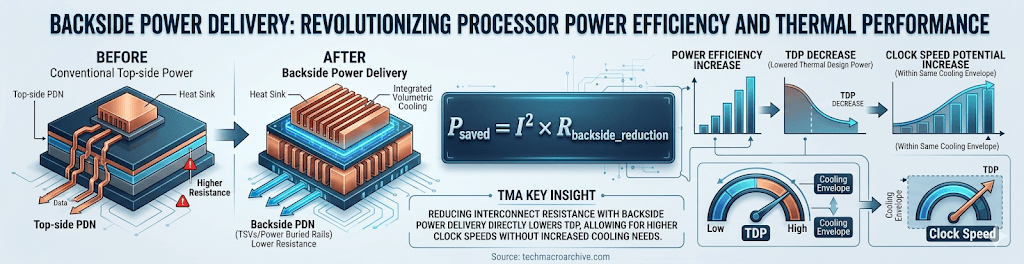 To justify the astronomical costs of 2nm, the architecture must solve the “Resistance Wall.” In traditional designs, power delivery and signal routing compete for space on the top layers, leading to significant IR drop (voltage sag) and routing congestion.