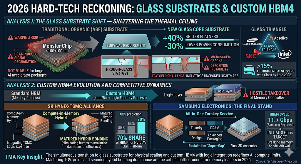 #GlassSubstrate #HBM4 #HybridBonding #TGV #Samsung #SKHynix #TSMC #AdvancedPackaging #2026TechMacro