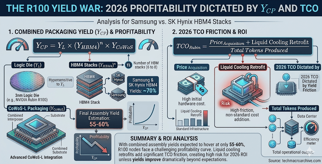 NVIDIA Rubin R100, HBM4 Yield Wall, TSMC 3nm Bottleneck, AI Hyper-Cycle 2026, Liquid Cooling Mandate, Vera Rubin Architecture, 336B Transistor Challenge, TCO vs Yield Tax