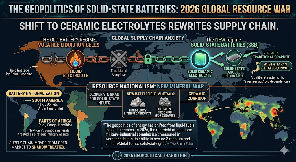 A 2026 deep dive into the geopolitics of solid-state batteries. Analyze how the shift from liquid to ceramic electrolytes is triggering a new global resource wa