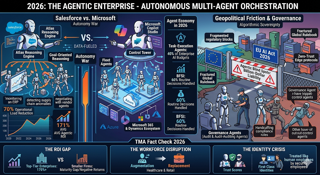 Agentic AI, Enterprise Workflow, Salesforce Agentforce, Microsoft Copilot Studio, AI ROI 2026, Digital Workers,